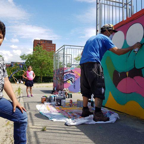 On Wednesday he painted in Slotermeer's Gebrandy Park. The sides of the skate park halfpipe are now covered with on one side a colourful and amusing crocodile and on the other a cartoonish though slightly scary-looking wolf. Last Thursday we took a day off from the office to show the city and celebrate the good in life. We saw modern sculptures in Art Zuid and youngsters performing somersaults on inline skates at Museumplein. During lunch I sat down with Ricardo for a small interview. He talks about what inspires him and how he likes to inspire kids in return. About how he believes you can learn to master art techniques through time and about his experiences in Amsterdam. Don’t hesitate to read all this yourself below!