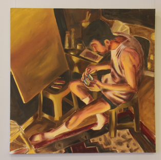 Moreover, as part as his work for university, Denizhan worked on several paintings that are more than ever a kind of reflection of today's situation... Indeed, Deniz represented himself in different situations of his daily life, alone. He called his collection "Daily home state of a lonely man". Pretty confusing since the situation in which we are living right now, right ? I mean... Pretty similar !
