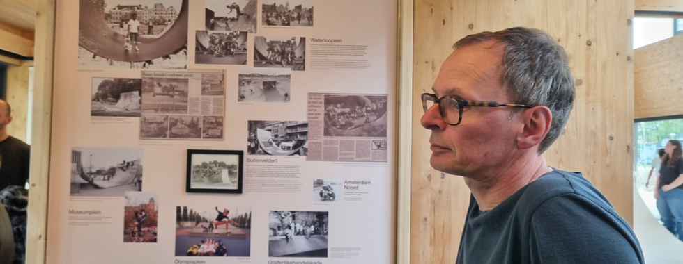 Mark van der Eng was a professional vert skater in the late eighties with a pro model at the British brand Death box. He still skates and thinks that 'Skateboard City' exhibition is important because it tells people something about the origins of skateboarding in the Netherlands. Specific places and people are also highlighted that were important for the development of skateboarding in our country. For this exhibition, Mark has supplied a lot of photo material (Uitgeest, Bickers Island, Zandvoort, Amsterdam Bridge, Museum Square, Dallas) and 2 boards.